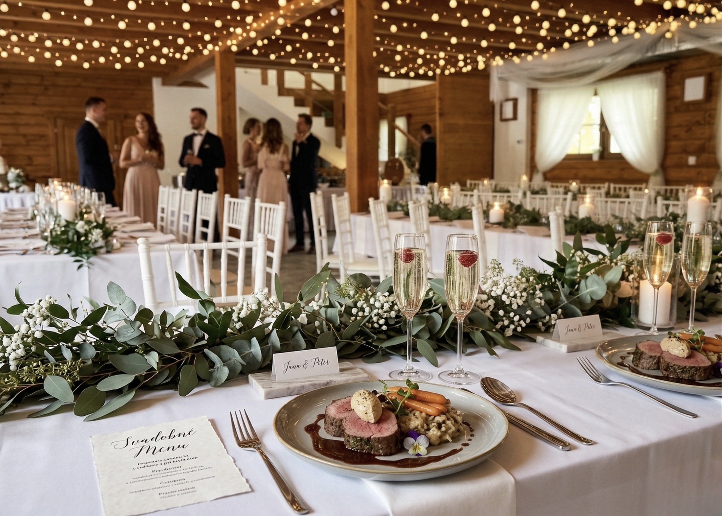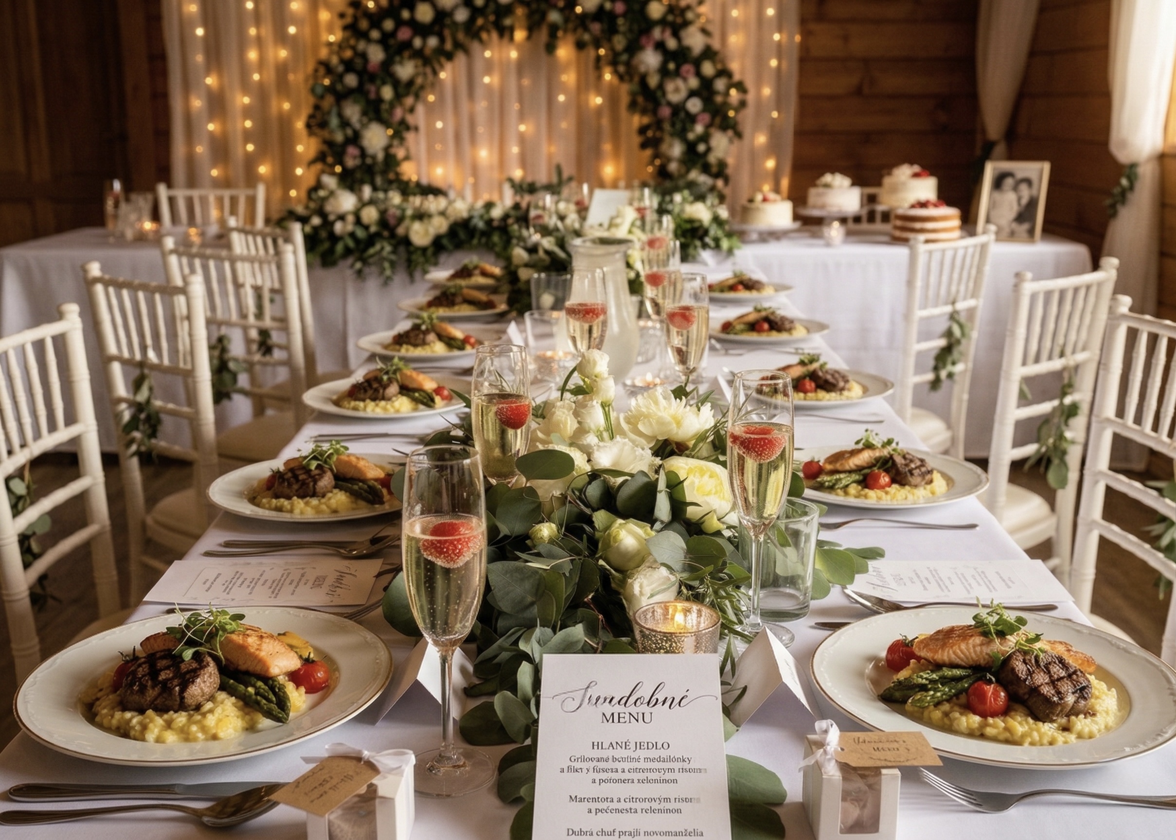 Slávnostnú tabuľu, svadobné menu a nápojový lístok prispôsobíme vašim požiadavkám.